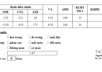 1; R – right Mắt Phải L-left Mắt trái 2; SPH (Sphere): Số độ đo của tròng kính diopters. Là cận thị dấu (-) hoặc viễn thị dấu (+) 3; CYL (Cylinder) Là số đo của loạn thị. Nếu ở ô này bỏ trống hoặc ghi 000 có nghĩa là đơn kính không có loạn