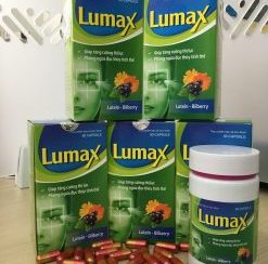Thông tin ELUMAX, Viên Uống Bổ Mắt THÀNH PHẦN CẤU TẠO Mỗi viên có chứa Lutein: 5mg Zeaxanthin: 5mg Beta – carotene: 1200 IU Natri ascorbate (vitamin C): 30mg Vitamin E: 30 IU (Acetate) Selen: 25mcg Zinc gluconate: 10mg Acid folic: 0,2mg DHA: 100mcg Biotin: 300mcg L-cystine: 50mg Coenzyme Q10: 10mg Đồng gluconate: 0,5mg Thành